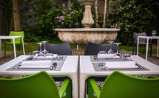 Le terrasse avec la belle fontaine